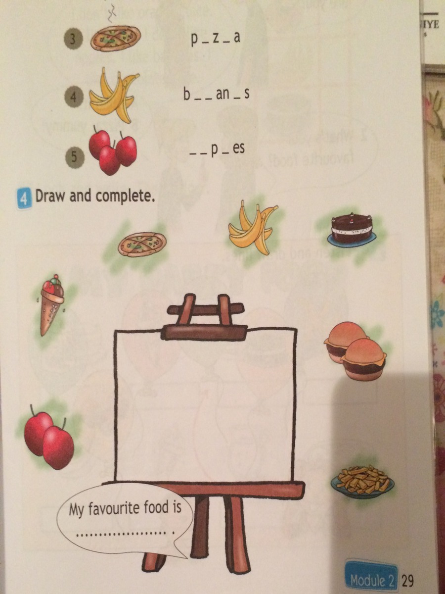 видешь где 1 впиши как называются банан яблока питца а где доска не знаю