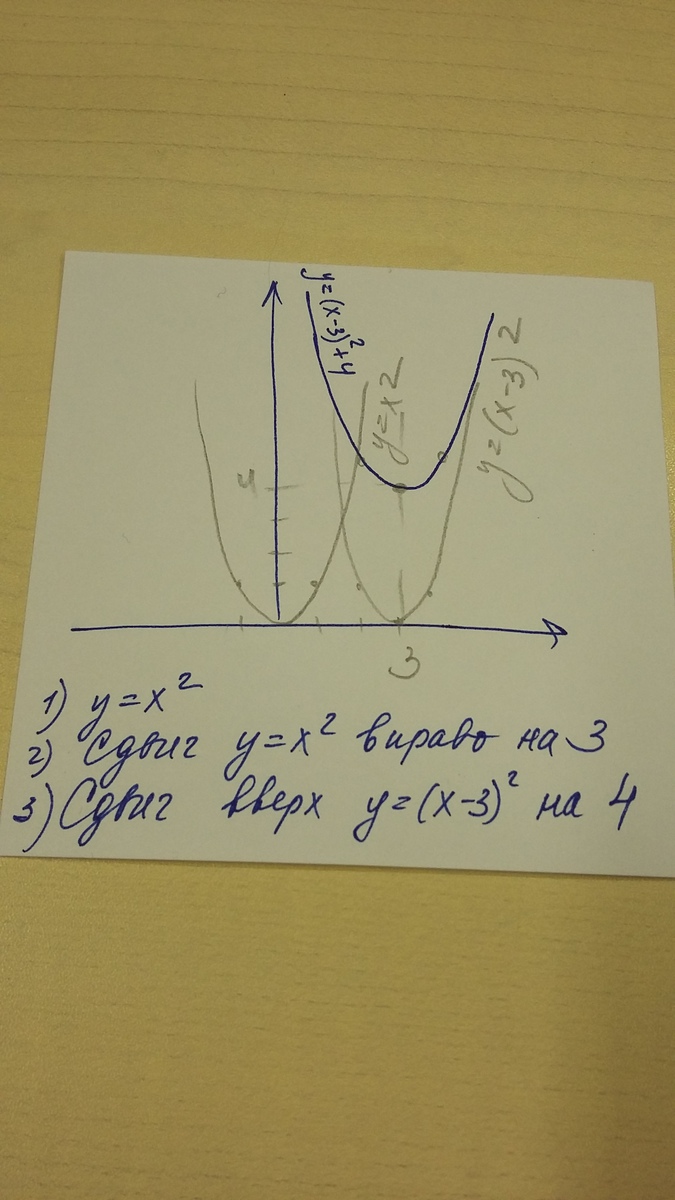 по оси х в право на 3 и по оси у вверх на 4 и строишь параболу