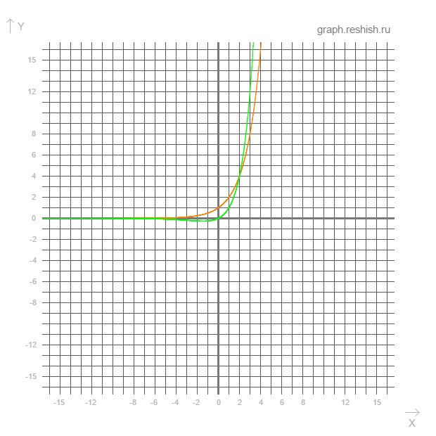 График функции в приложении: Зеленый цвет - производная, оранжевый - исходная функция.
