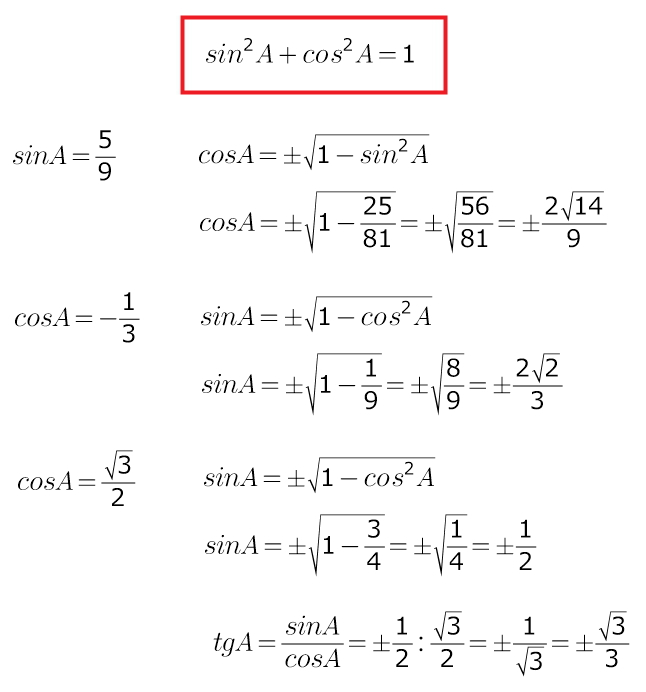 5)sinA=?,если cosA=-1/3