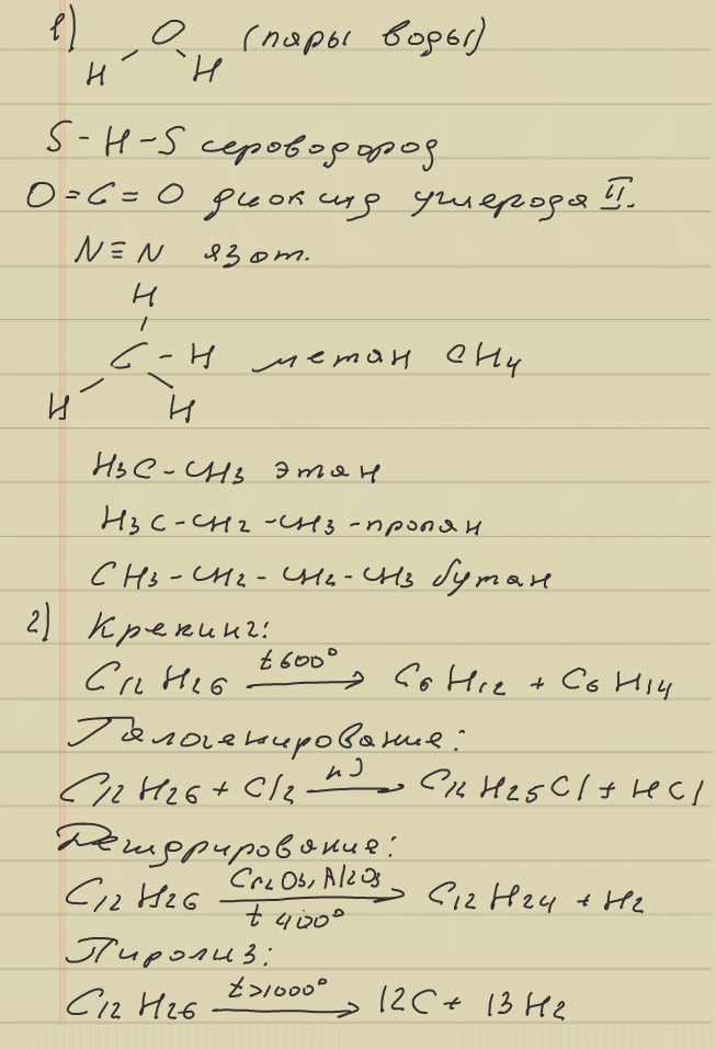1) Напишите молекулярные и структурные формулы углеводородов, которые входят в состав природного и попутного нефтяного газов. 2) Составьте уравнения реакций которые могут происходить с углеводородом додеканом С12Н26 при крекинге нефти. 3) Назовите основные фракции нефти и их состав