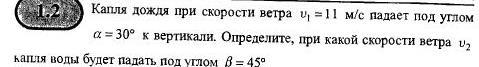 Tang(A=30гр) =Vв/Vk=11/vk=0.577 => Vk=19.06 м/с. при А=45гр Tang(A)=1=> Vв=19.06 м/с
