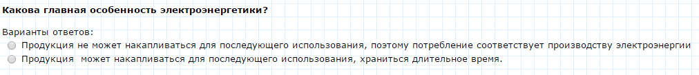 ПРАВИЛЬНЫЙ ОТВЕТ: продукция не может накапливаться для последующего использования, поэтому потребление соответствует производству электроэнергии.