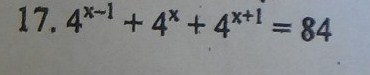 4^(x-1)+4^x+4^(x+1)=4^(x-1)*(1+4+16)=4^(x-1)*21=84 Откуда 4^(x-1)=4 и далее х-1=1 и окончательно х=2 вроде так