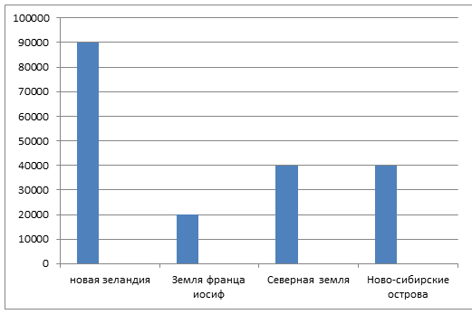 покажи на диаграмме столбчатой или линейной площади этих островов новая зеландия 90000м2, Земля франца иосиф 20000м2 Северная земля 40000м2 Ново-сибирские острова 40000м2