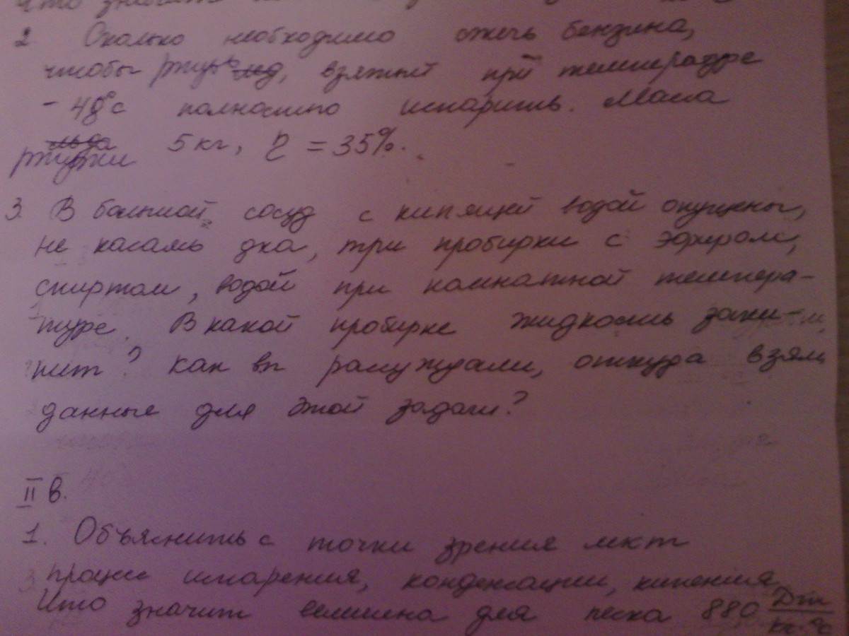 Смотрим таблицу температур кипения указанных жидкостей. Видим, что температура кипения эфира и спирта меньше 100° - значит эти жидкости будут кипеть. Вода же в пробирке не закипит, так как есть потери тепла через стенки пробирки.