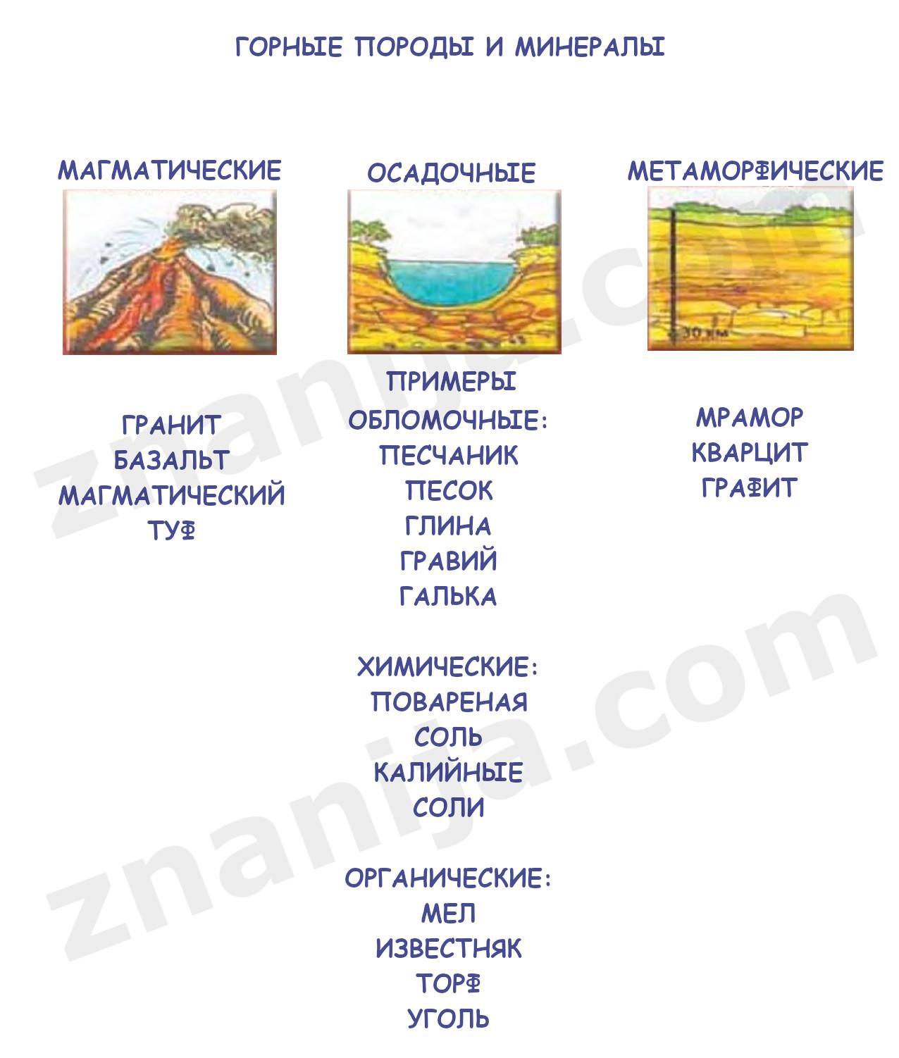 4) базальт - магматическая порода.
