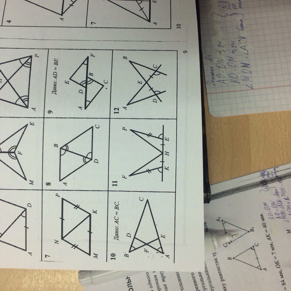 Таблица 7.5 признаки равенства треугольников. Помогите пожалуйста решить задачу 12 и только