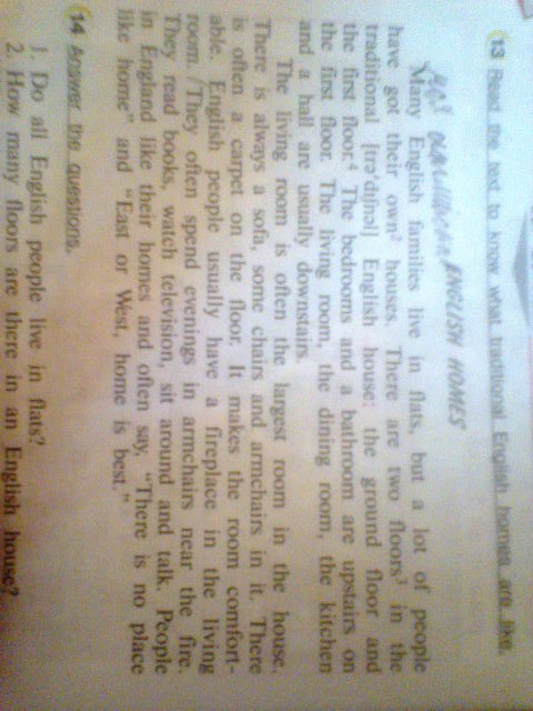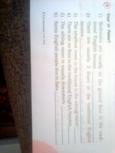 1. False. In the traditional English houses bedrooms are usually upstairs.