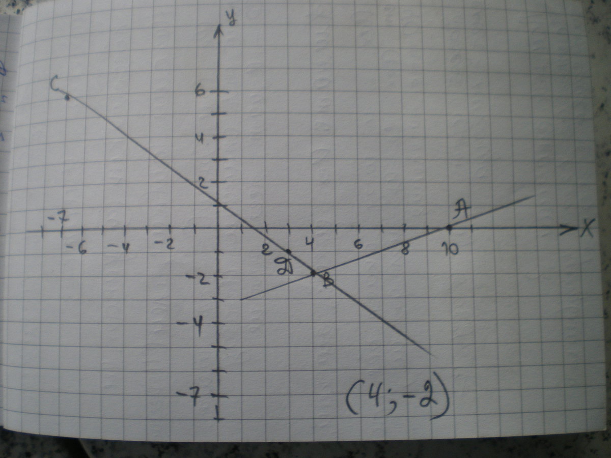 отметьте на координатной плоскости точки А ( 0 и 10), В (4 и -2), С (-7 и 6) D (3 и 1) запишите координаты точки пересечения прямой АВ и СD?