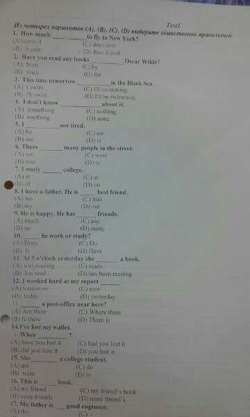 17) Не видно на фото...Я поствила бы My father is a good eng...