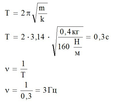 найдите частату колебаний груза на пружине массой 400 г, подвешенного к пружине жесткостью k=160