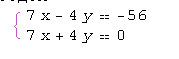 14x=-56 x=-56/14=-4 7*(-4)+4y=0 4y=28 y=28/4=7 otvet (-4:7)