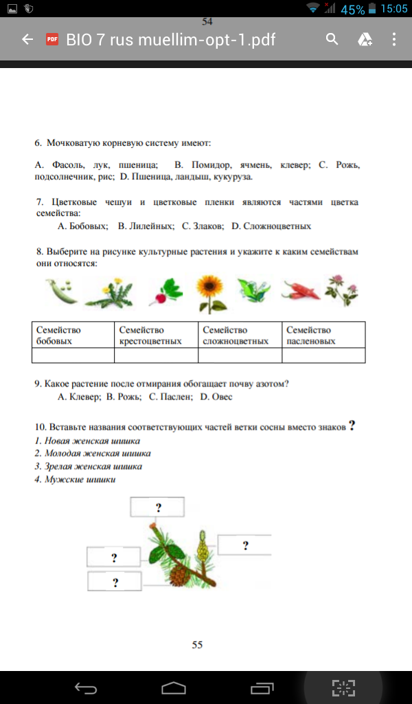 Пшеница, лук, помидор, ячмень, клевер, рожь, подсолнечник, рис, кукуруза, ландыш имеют мочковатую корневую систему.