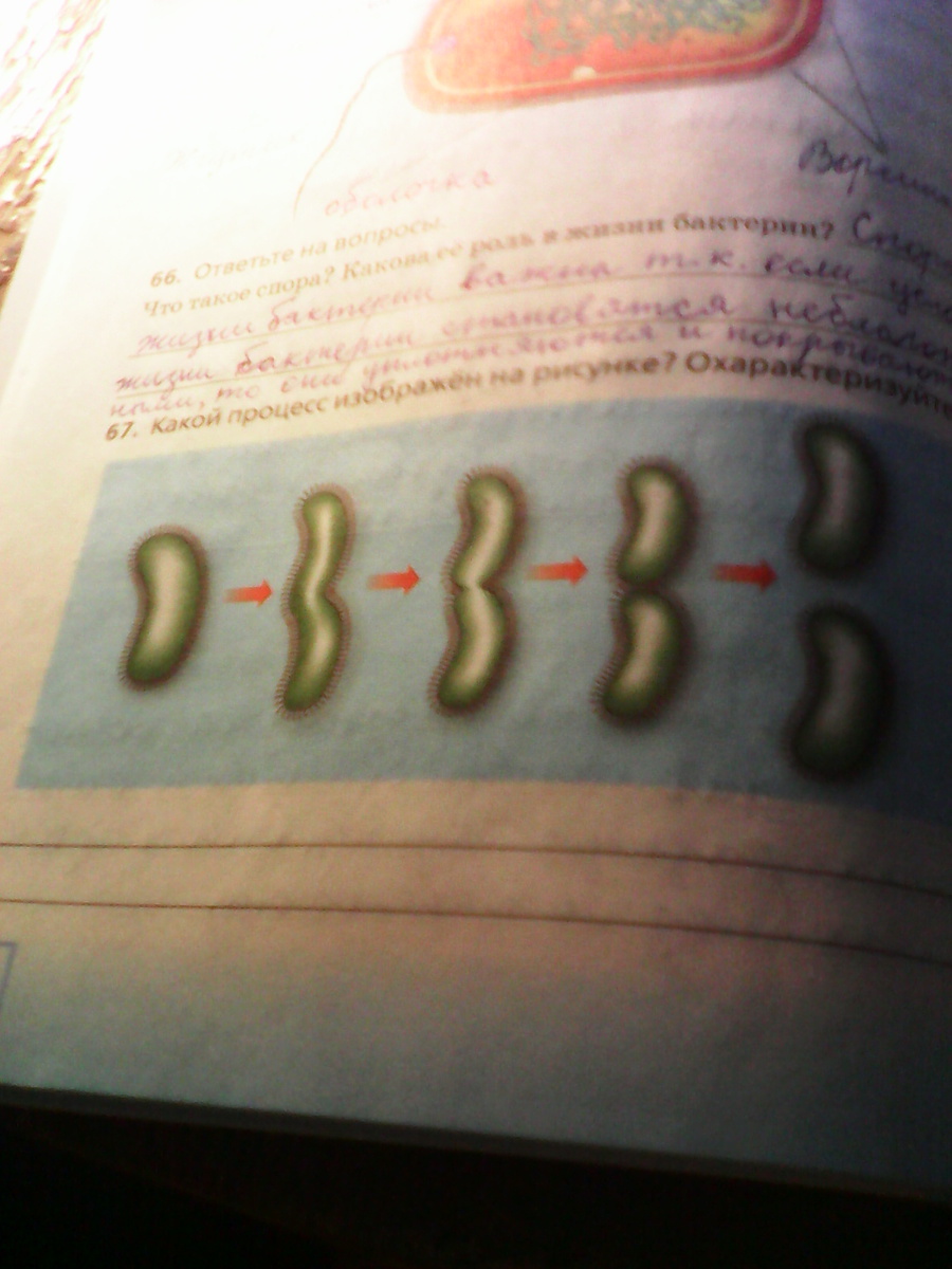 Это скорее всего процесс конъюгации( деление клетки на двое ,при этом дочинная клетка полностью похожа с материнской).