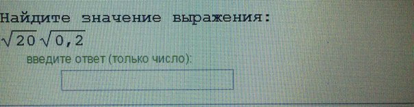 Корень 20 умножить корень 0.2 равно корень 4 следовательно ответ 2
