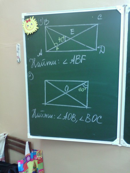 2) Жаль, что ваша учительница не 0бозначила вершины прямоугольника,но всё же один из этих углов равен 180-120=60, второй 180-60=120