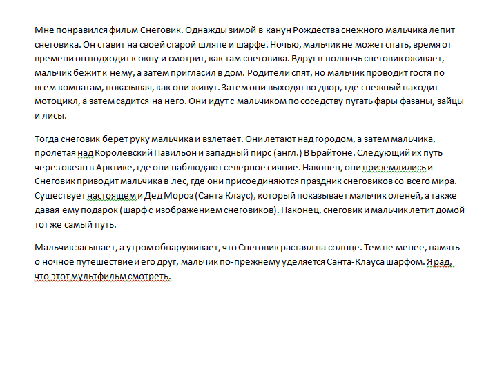 Помогите написать эссе по английскому языку по мультфильму The snowman, или по короткометражному фильму Дядя из Чикаго.