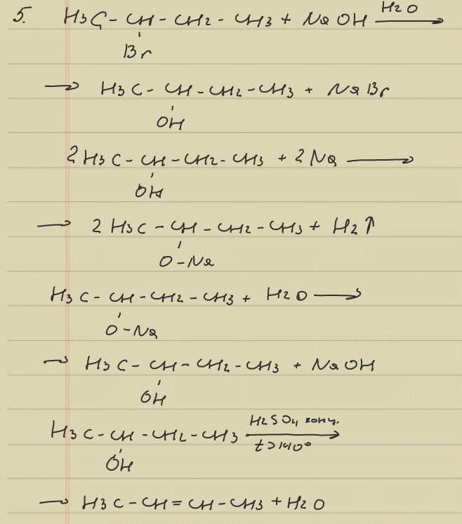 CH3-CH(Br)-CH2-CH3 + NaOH =(H2O)= CH3-CH(OH)-CH2-CH3 + NaBr