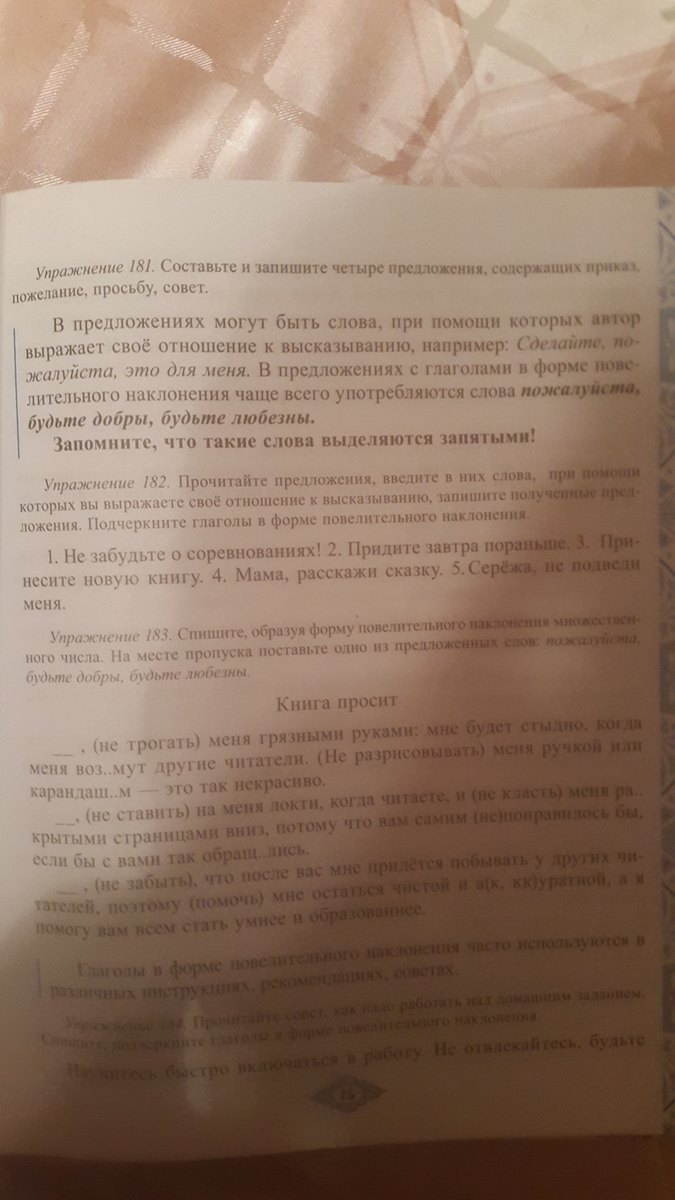 1. Не забудьте о интересных соревнованиях! Глагол в ф. повелительного наклонения - не забудьте; 2. К сожалению, придите завтра пораньше. Глагол в ф. повел. накл. - придите; 3. Принесите шикарную новую книгу. Глагол в ф. повел. накл. - принесите; 4. Мама, расскажи любимую сказку. Глагол в ф. повел. накл. - расскажи; 5. Наш неответсвенный Серёжа, не подведи меня. Глагол в ф. повел. накл. - не подведи.