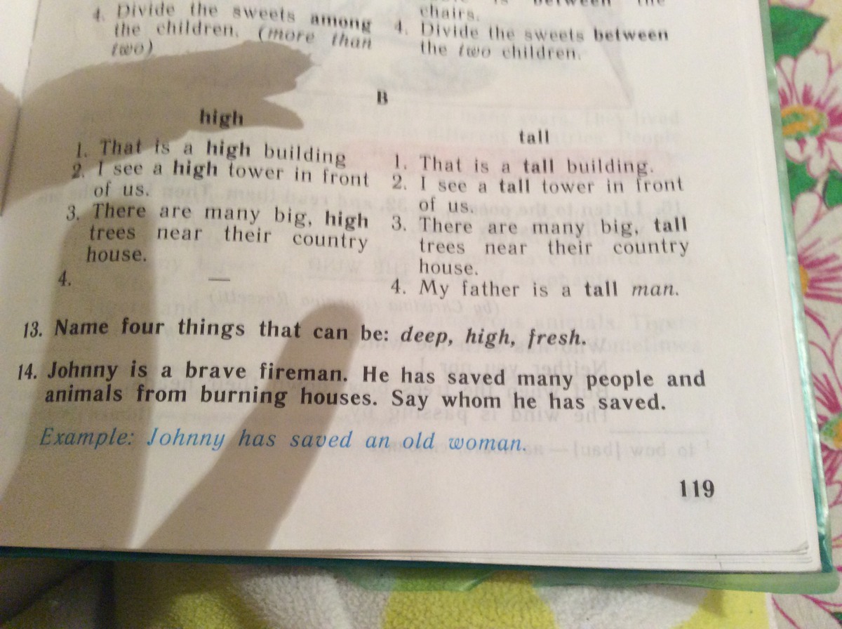4-вещи которые могут быть high~ высокие, deep~ глубокий, и fresh~ свежий. Hапример: high man, high tree, high chapel~ высокий человек высокое дерево, и высокая часовня.