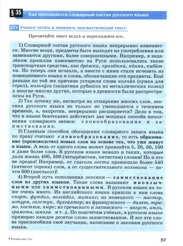 подготовьте небольшой рассказ,который бы явился ответом на вопрос, поставленный в названии параграфа 35. название параграфа как пополняется словарный состав русского языка