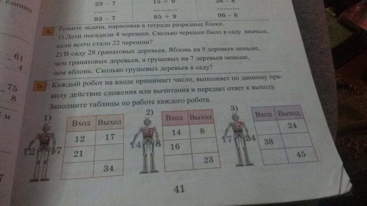 Во втором: отнимает 6, заполняет все остальные колонки: 10, 29