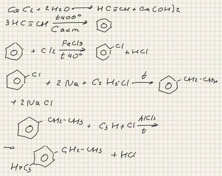Карбид кальция - ацетилен - бензол - хлорбензол - этилбензол - 4 пропил - 1 - этилбензол