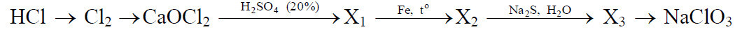 NaCl + 3H2O =(элек.)= NaClO3 + 3H2.
