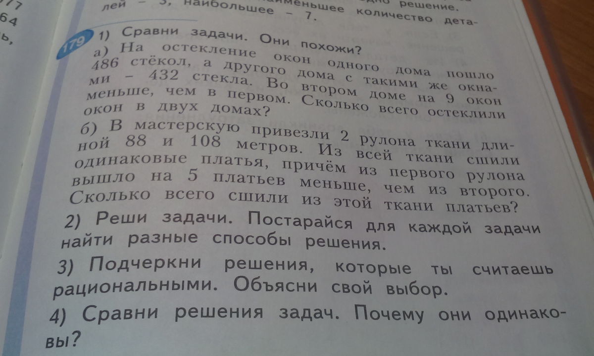 3) 108+88=196 (м) - ткани пошло на все платья.4) 196:4=49 (пл.)