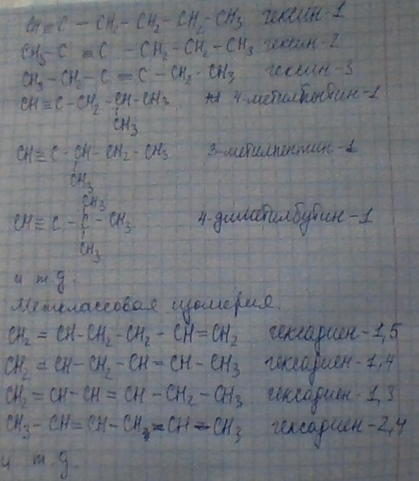 Виды изомерии ацетиленовых углеводородов. Выведите все изомерные ацетиленовые углеводороды состава С6Н10. Назовите их по международной номенклатуре.