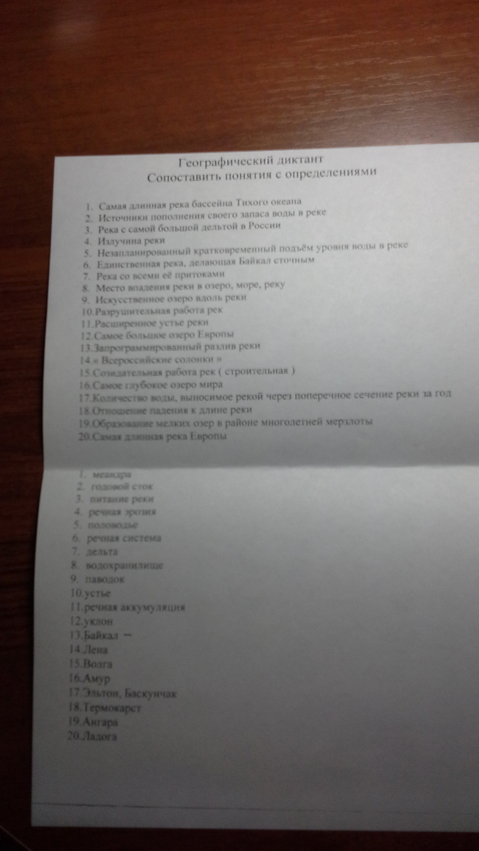 Географический диктант. Сопоставить понятия с определениями.