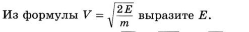 V=sqrt{2E/m};;V= sqrt{2E}/ sqrt{m} ;; sqrt{2E} =V sqrt{m};; sqrt{E}=V sqrt{m} / sqrt{2} ;;\