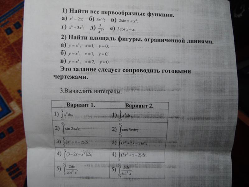 Помогите с первообразной и интегралами! Пожалуйста) 1,2 задание и вариант 2)