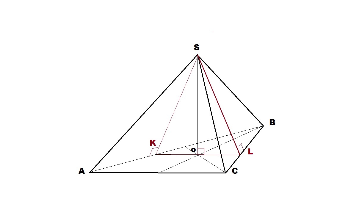 ортоцентр в прав треугольнике лежит в точек пересечения медиан (высот, бисс) которые делятся в ней в соотношении 1/2. ,Значит SO- высота пирамиды _|_KL т.е.SKL _|_ABC