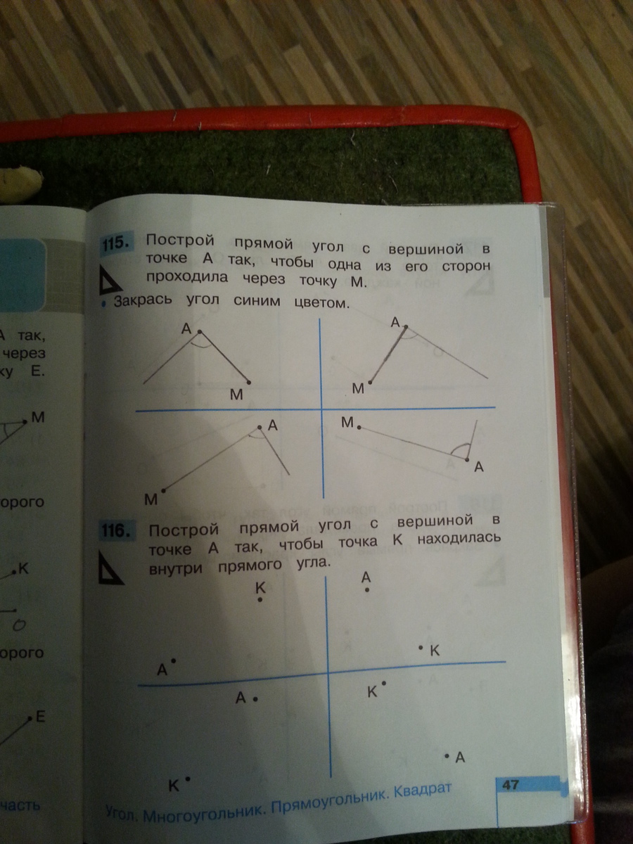 построй прямой угол с вершиной А так чтобы одна из сторон проходила через точку М правильно ли выполнили?