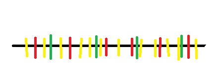 На палке отмечены поперечные линии красного, жёлтого и зелёного цветов.