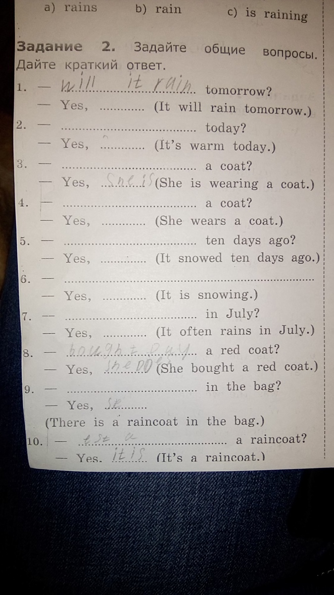 9) Is there a raincoat (сами допишите). Yes,there is.