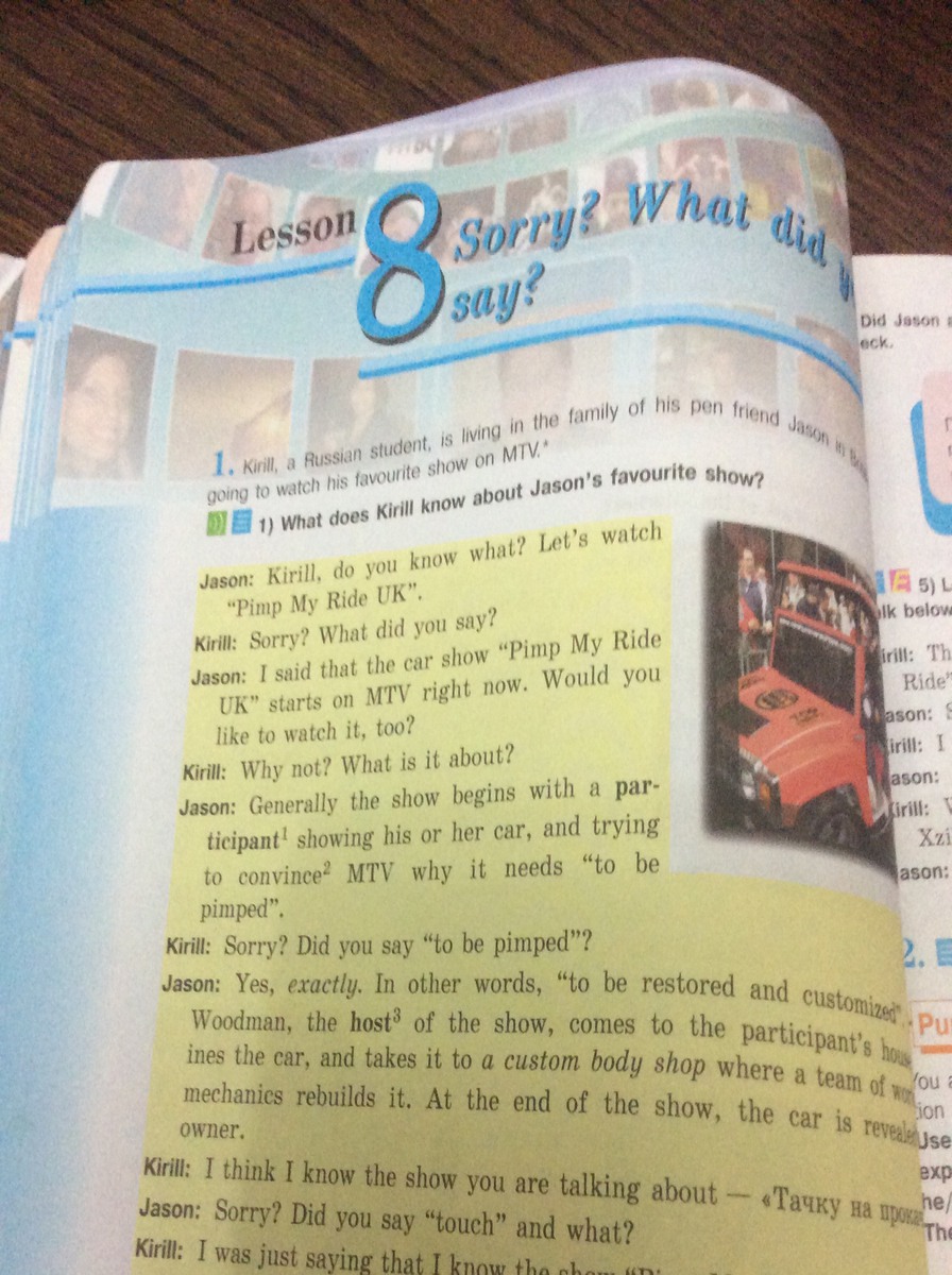 Д: Я сказал, что шоу про машины "Тачка на прокачку" начинается по MTV прямо сейчас. Ты бы тоже хотел это посмотреть?