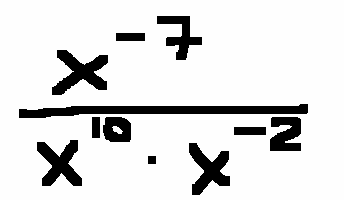 число с отрицательной степенью ставиться в знаменатель и возводиться положительной степенью то есть х в -7 уйдет вниз и будет х в7...а х в -2 уйдет вверх и будет х в 2...тогда в числителе будет х во 2 а знаменателе х в 10 и х в 7 и тогда результатом выражения будет 1/х в 15 или х в -15