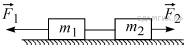 Два бруска массами m1 = 2 кг и m2 = 1 кг, связанные лёгкой нерастяжимой нитью, находятся на гладкой горизонтальной плоскости (см. рисунок). К ним приложены силы F1 = 12 Н и F2 = 3 Н. Найдите модуль ускорения системы этих тел.