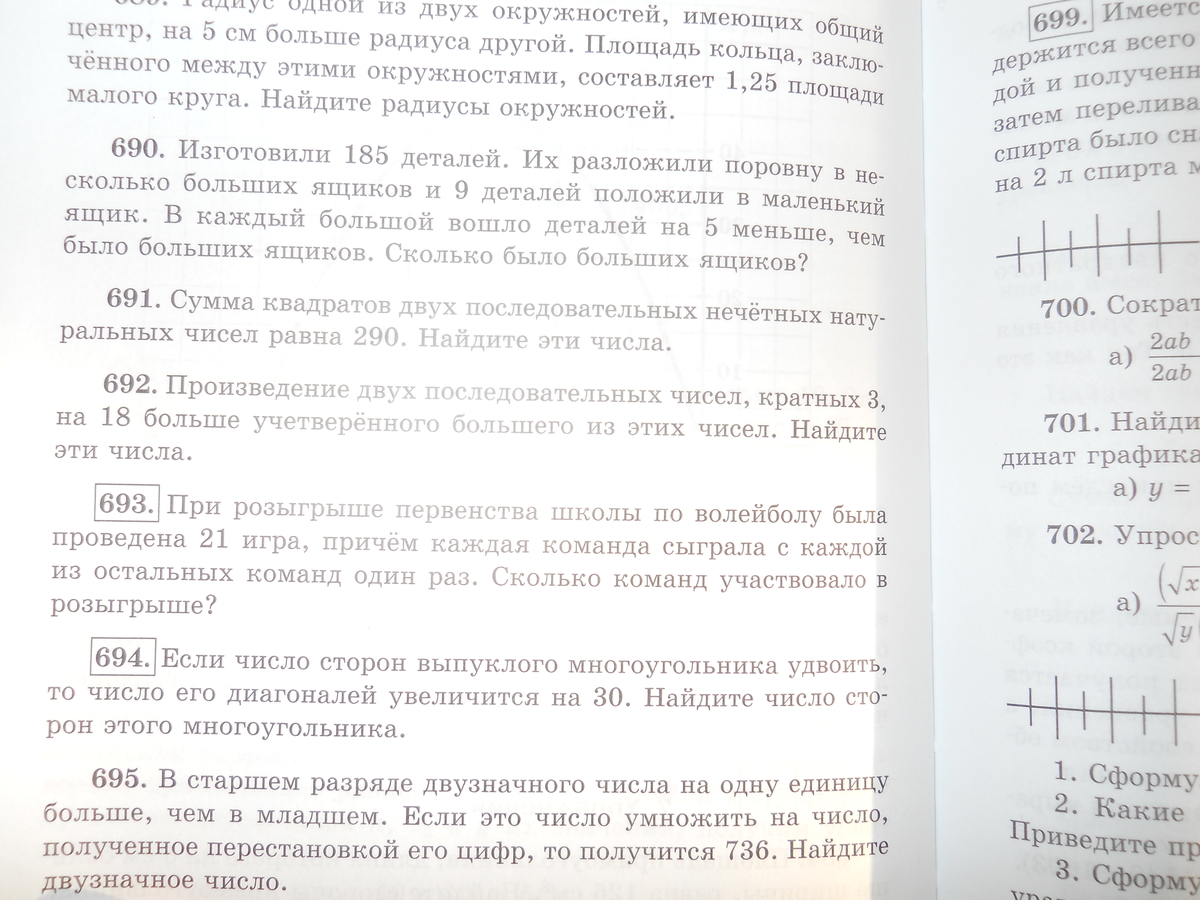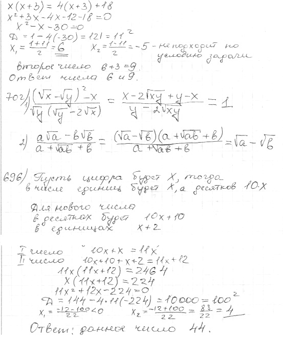 а в 692 - я просто последовательно выразила через Х - первое число, кратное трем,а следующее кратное 3 будет (Х + 3) и составила уранение согласно улсовию задачи