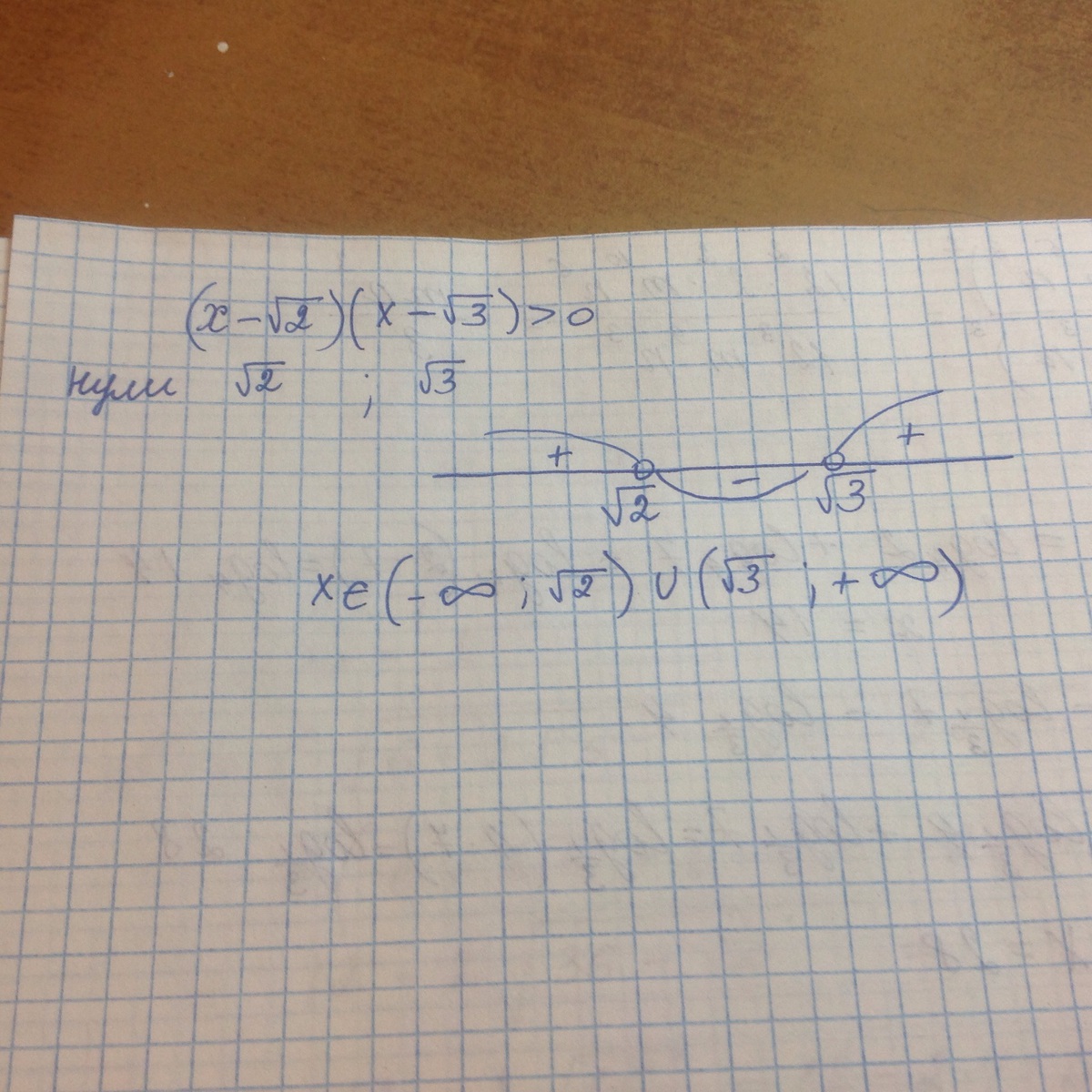 ]-∞;√2[ U]√3;+∞[…………