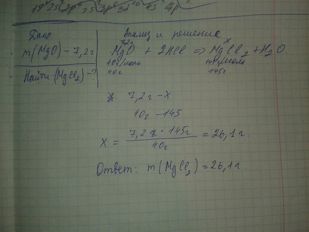 сколько граммов хлорида магния образуется при взаимодействии 7,2 г оксида магния с солянной кислотой