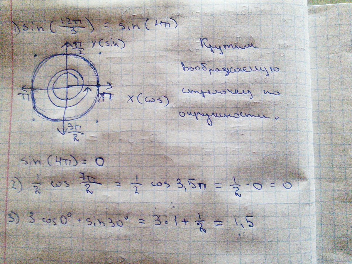 Достаточно заучить несколько табличных значений, понять, что пи=180градусов. И знать, что такое радиус окружности:)) Оформи, как тебя в школе учили. У меня возможно не совсем то оформление.