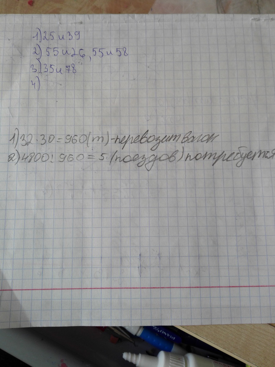 Поезд состоит из 32 вагонов грузоподъёмностью по 30 т в каждый.Сколько понадобится таких поездов, чтобы перевезти 4800т груза?