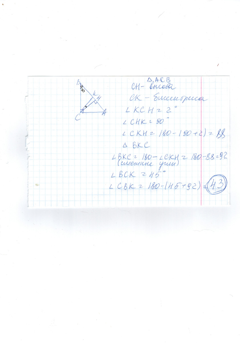 меньший угол треугольника равен 43 градусам