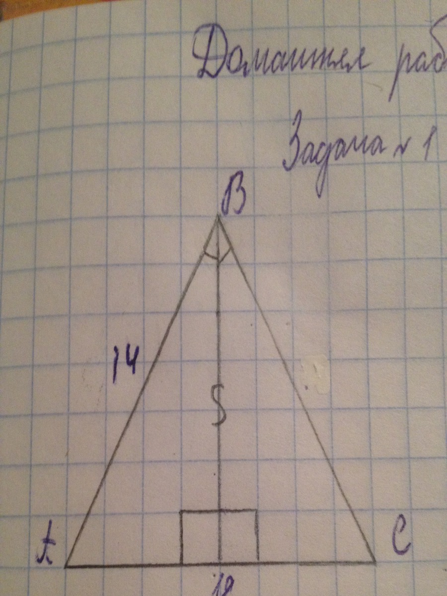 ВН является биссектрисой и высотой треугольника АВС оно еще и медиана . отсюда следует что треугольник равнобедренный . тогда АВ=ВС=14