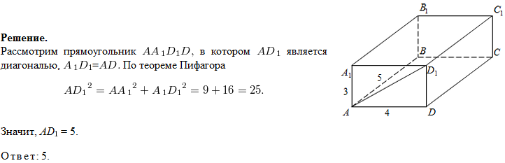 Найдите расстояние между вершинами A и D прямоугольного параллелепипеда, для которого AB=4, AD=3 AA1=7.