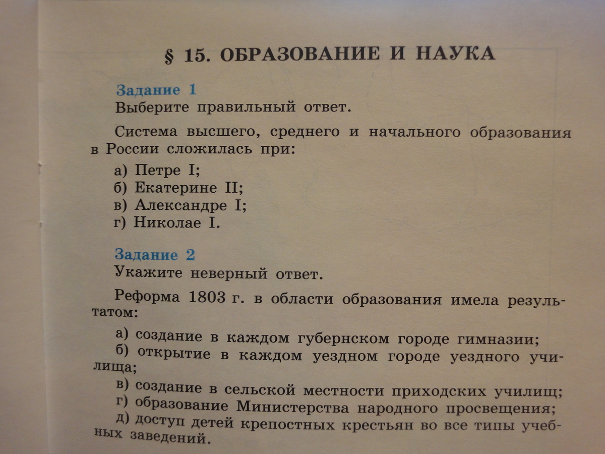 Задание 1. При Александре I окончательно сложилась система высшего, среднего и начального образования